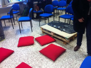 Estos dos descubrimientos entroncan con algo con lo que llevamos trabajando todo este año en el proyecto Esto No Es Una Clase: la importancia del mobiliario en la educación. Creo que uno de los elementos claves de la rEDUvolution es entender el uso narrativo del espacio y el mobiliario en el aula y transformar las dinámicas de poder alterando esos usos que parecen inamovibles pero que no lo son. Por ejemplo, en el proyecto Esto No Es Una Clase vamos a dedicar un capítulo entero al tema de la puerta: dejarla abierta, cerrada o entornada significa cosas muy distintas, más allá de la necesidad práctica de cerrarla cuando hay ruido fuera. La puerta es el lugar a través del cual pasamos y nos investimos con los roles de profesor y de alumno; es, por lo tanto, un recurso cargado de significado que nos performade manera determinada. Dar una clase con la puerta cerrada por obligación del profesor o dar una clase con la puerta cerrada porque se ha llegado a un consenso entre la comunidad de estudiantes y profesores es algo muy diferente. Creo que hay que repensar los espacios docentes desde la perspectiva de su narración para abolir las visiones panópticas del aula-prisión y construir no-aulas: espacios de reunión donde sucede el aprendizaje.