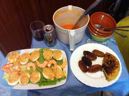 El día 13 de Julio, en un impas en Madrid recién llegada de Tarragona y con un pié en Almería, ocurrieron varias cosas que vuelven a demostrar una vez más que, a. lo más innovador en educación sigue siendo algo muy cercano pero que permanece invisible y b. es necesario contaminar lo pedagógico por aquello que está fuera de la pedagogía. El caso es que organizamos una reunión en casa de Clara Rosa Rodríguez, la abuela de Clara Megias, la estupenda señora que dice “Miradas invisibles” en la cabecera del programa del mismo nombre o que abre la puerta de su casa y saca un billete de 6€ si quien contesta a la pregunta “¿Quién es?” resulta afirmar que es un pobre….. Y entre los comentarios sobre tesis doctorales, proyectos de investigación y eventos varios surgieron como de la nada suculentas croquetas, ricos huevos rellenos, una magnífica tortilla de patata y…..como no, un increíble gazpacho.