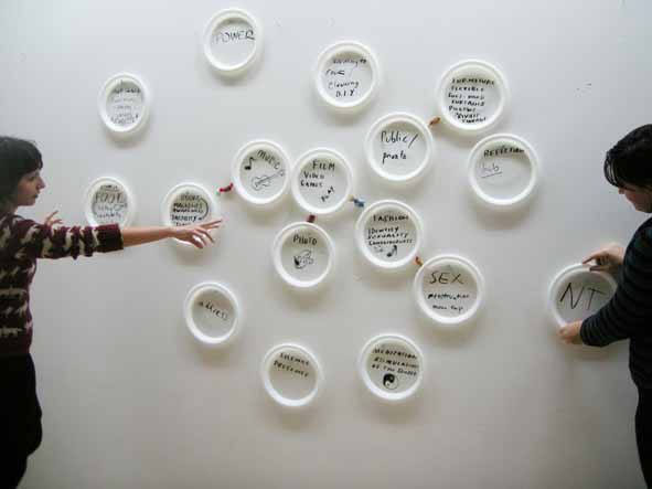 La segunda jornada la dedicamos al EDUPUNK y a pensar en diferentes formas de disruptir la educación tóxica que todavía nos rodea. El proceso de visualización se realizó mediante platos de plástico que dieron forma a rizomas blancos.