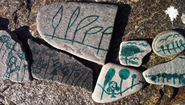 Al final del día, Sol recolectó un montón de plumas y se construyó un sombrero alucinante. Después de visitar Cabo Norte, paramos en el puerto de Havoysund. Allí, donde parecía que sería imposible hacer un nuevo taller ya que todos los materiales que teníamos a nuestra disposición ya los habíamos usado antes, sucedió el taller de Cómics Rupestres. Como siempre viajamos con nuestro kit de dibujo compuesto por rotuladores y cuadernos, cogimos los rotus y unas piedras planas bastante porosas y dibujamos una historia sobre una niña que se encuentra un lobo en un bosque y se lo come….Este taller lo conectamos al día siguiente con las pinturas rupestres del Museo de Alta donde todos aprendimos de las increíbles representaciones visuales hechas por artistas noruegos hace 6000 años.