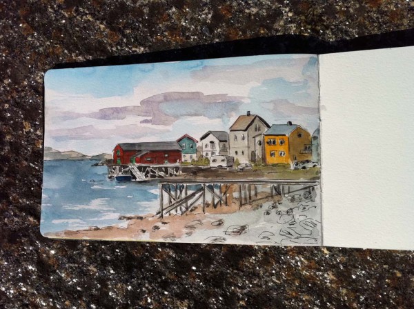 No hay nada como viajar con un acuarelista para que ocurran cosas inesperadas. En este último tramo de viaje en la Laponia Noruega, Joaquín ha encontrado tantos paisajes susceptibles de acuarelar que Sol, Paz y yo nos hemos visto obligadas a ESPERAR mientras nuestro padre/pareja pintaba. La primera vez nos aburrimos. La segunda no. Inspirada por Monsieur Voyage a quién he conocido este verano gracias a mi profe de inglés Edward Marks se nos ocurrió hacer diferentes talleres como por arte de magia.