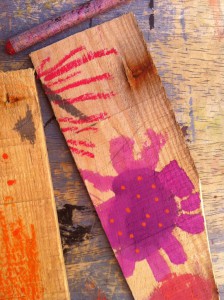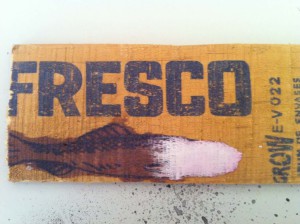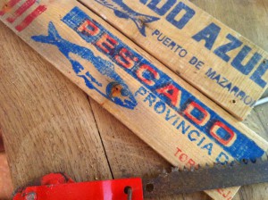 Durante los ya casi doce años que llevamos viniendo a Almería, hemos ido recogiendo cuidadosamente de las playas desiertas restos de las cajas de pescado que llegan hasta nosotras destrozadas por el mar. Son cajas de madera que, claramente pertenecen a otra época, y de echo, cada vez encontramos menos por que han sido sustituidas por cajas de plástico.