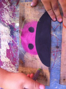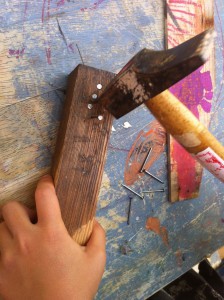 Después de pintar, comenzó la parte más física del proceso y donde conectamos el aprendizaje con temas de género, por que mis hijas de 5 y 8 años, serraron, martillearon y taladraron las maderas, realizando tareas que muchas veces nos da miedo que acometan los niños y que, en muchos casos, nunca realizan las niñas ya que forman parte del imaginario del trabajo masculino.
