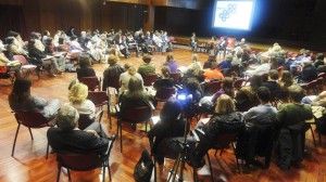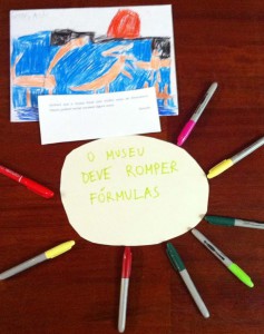 Me perdí el principio (sobre todo me dio pena no asistir a la charla de Jocelin Dodd Directora del Research Centre for Museums and Galleries de la Universidad de Leicester) pero llegué a la parte de la sesión en que, divididos en grupos, trabajamos para hacer diferentes manifiestos sobre los museos. A mi todo esto me pareció alucinante ya que llevo tanto tiempo trabajando la idea de los manifiestos en la educación y cuando acababa de leer el increíble manifiesto de Orhan Pamuksobre los museos hacia pocos días. Tras una excelente comida, como ocurre siempre en Portugal, dio lugar la segunda parte del evento en la que tuvo lugar mi intervención. En un principio, conseguí borrar las sombras de siesta debido a que pedí a las asistentes quitarse los zapatos y subirse a la sillas: nada mejor para hablar del miedo que experimentarlo.