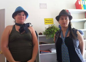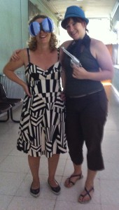 La semana pasada ocurrieron varios sucesos que pusieron de manifiesto que las dinámicas de las narrativas de ficción ya han comenzado a impregnar la realidad pedagógica. El jueves veintiocho estaba tranquilamente sentada en mi mesa de trabajo cuando dos individuas que rápidamente reconocí como Amanda Robledo y Lucía Sánchez ataviadas de gánsteres, irrumpieron en mi despacho y, tras un discurso que justificaba la acción que seguidamente iban a perpetrar, literalmente me SECUESTRARON. A punta de pistola, me taparon los ojos y me condujeron a ciegas por los pasillos de la facultad hasta que me introdujeron en un coche. Aunque lo intenté, no pude resistirme. Amanda conducía mientras Lucía se sentaba con migo en los asientos traseros donde dio comienzo la primera tutoría móvil de mi vida: entre túneles de la M-30, semáforos en rojo y policías municipales que nos miraban, Lucía y yo íbamos hablando del tema de su tesis doctoral, nuevos métodos de evaluación en educación artística, sobre investigación cualitativa y sobre narrativas poéticas.