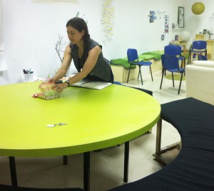 | Amanda en la sala de trabajo de la Fundación Tuya |