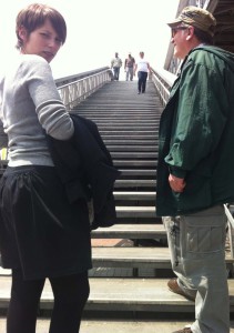 | Gustavo y Clara a punto de subir al Tranmilenio |
