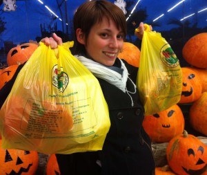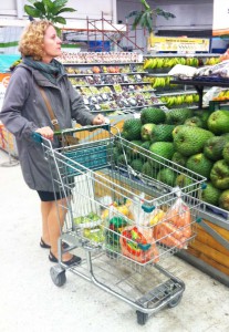 | Clara después de comprar kilos de fruta |