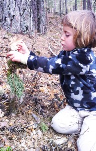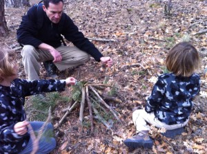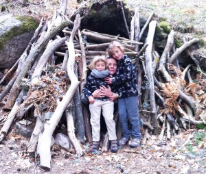 En segundo lugar, el fin de semana nos fuimos a la naturaleza para convertir la posibilidad de aprender de la obra del artista Andy Goldsworthy en una experiencia real. Si el jueves habíamos asistido a un acto pedagógico de análisis/creación, ahora asistiríamos a un acto pedagógico de creación/análisis. Tras el acercamiento a la obra del artista desde Google (es decir, desde un sistema de representación) pasamos a vivir una experiencia súper intensa tomando sus trabajos en la naturaleza como punto de partida y construyendo una cabaña y un tótem en medio de la profundidad de un bosque e el que sólo se oía el transcurrir de un río.
