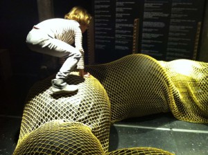 Este reto lo hemos afrontado la semana pasada en dos ocasiones. En primer lugar, lo hicimos el jueves pasado cuando fuimos mis hijas y yo a Matadero-Madrid a ver la exposición L´Émoi du design donde se recogen veinte iconos del diseño francés. Además de analizar el diseño desde su tridimensionalidad, de poder tocarlo, consumirlo y olerlo, el TIF (Talleres Inesperados en Familia) que experimentamos, no estuvo mediado por nadie y fue una experiencia de cautivación estética en la que nos fuimos parando, analizando y manipulando las piezas que más nos interesaban, las piezas cuya direccionalidad encajaba con la nuestra, tal como el título de la exposición nos prometía. Partiendo de la base de que una exposición es también un sistema de representación, la diferencia con la representación del acto educativo radica en la tangibilidad de las piezas y en el autocomisariadoque realizamos las tres juntas al no seguir el orden de visualización estipulado.