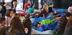 A las 12 empezó una charla a la que se acercaron los cerca de 60 estudiantes congregados en las jornadas. En este caso la narratividad no la creamos solo a través del contenido sino transformando el formato del evento pues les pedimos a los participantes que se trajesen sus sacos de dormir y se relajasen en el suelo y claro, esta rotura narrativa funcionó: se diluyeron las barreras y la efervescencia que se creó me impidió hablar ya que los estudiantes tomaron la palabra y dieron ellos la conferencia: se convirtieron en los protagonistas invirtiendo la jerarquía de la participación.