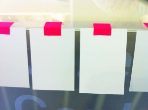 La jornada comenzó a primera hora, cuando Amaia y yo llegamos al  Centro Huarte donde nos esperaban los integrantes del departamento de educación: Koldo Sebastián, Betisa Ojanguren y Yotima con quiénes seleccionamos la sala, organizamos el mobiliario (quitamos las sillas y dejamos el espacio diáfano) y dispusimos las mesas para el perfomance de identificación.