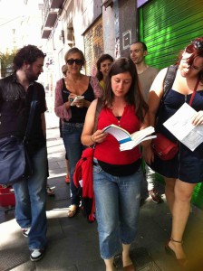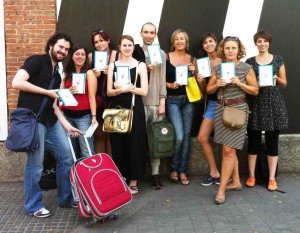 El pasado miércoles tuvo lugar la primera reunión anual de nuestro colectivo (María Acaso, Rosa Alonso, Noelia Antúnez, Noemí Ávila, Ana Cebrián, Edgardo Donoso, Marta García, David Lanau, Noemí López, Emma Manso, Alberto Marrodán, Clara Megías, Diana Montoya, Eva Morales, Carol Muñoz, Andrea de Pascual, Julia Rico, Amanda Robledo, Lucía Sánchez) y en medio de un estupendo cuscús, Alberto desveló lo que traía en su maleta: los primeros ejemplares, casi calientes, del trabajo que llevábamos realizando todo el invierno. A partir de este momento, la reunión se centró en el libro, en el nuevo rizoma plantado y en como, a través de una prosa a medio camino entre lo poético y lo pragmático, hemos intentado condensar las ideas que bullen en nuestras cabezas desde hace tiempo (concretamente desde 2008 que es cuando nos conocimos todos en el curso de doctorado Didáctica de la Sospecha). Incluso cuando ya salimos del restaurante e íbamos andando por la calle, no lográbamos dejar de leer el libro que con tanto amorhabíamos escrito.