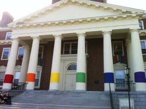 Visualizar lo que está oculto es la primera forma de transformar la sociedad y eso es lo que parece que está llevando a cabo la administración en el campus mediante una serie de acciones entre las que se encuentra They can play http://www.colby.edu/colby.mag/issues/64/article/1456/they-can-play/ un proyecto en el que los atletas homosexuales salen del armario y debido al cual el arco iris ha recubierto el centro de la masculinidad de Colby: la fachada de Miller Library. ¿Qué querrá todo esto decir? ¿Realmente la administración se está tomando en serio las peticiones de Reclaim Colby con respecto a la marginación de las minorías en el campus o es simplemente una manera cosmética de enmudecer a los estudiantes? ¿Por qué se hace esta petición desde el mundo del deporte que es precisamente el más homofóbico del campus? ¿Cómo serán tratados a partir de ahora los estudiantes que han hecho pública su homosexualidad? La inclusión de las minorías es un tema pendiente en gran cantidad de las instituciones universitarias que conozco: a pesar de que muchas de ellas se autodefinen como progresistas y críticas la realidad es que, tal y como estamos viendo en el presente proyecto, las pedagogías invisibles de las clases hegemónicas impiden que todo aquello que no entra dentro de sus parámetros se haga un hueco estable, duradero, explícito. Esta contradicción entre lo que decimos que somos y lo que somos realmente cimenta la posuniversidad en la que nos encontramos, lo que hace urgente y necesario detectar y analizar las narrativas ocultas quizás para seguir sin tener nada claro pero por lo menos diferenciar entre las dos partes de un discurso que nos dice que solo tiene una parte.