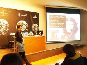 Gracias a las nuevas tecnologías puede participar en este evento junto con Clara Megías y otros miembros de Pedagogías Invisibles. Clara y yo organizamos la charla ¿Estoy artista o estoy profesora? Utilizando el arte contemporáneo como formato pedagógico. En nuestra propuesta quisimos trabajar varias ideas siendo la primera la del profesor como productor cultural, como intelectual transformativo, como agente político capaz de realizar día a día micro revoluciones mediante las que transformar la sociedad. Quisimos visualizar la idea de esta producción como remezclaasí como la demanda de la creatividad como una de las principales competencias del docente rEDUvolucionario. En segundo lugar, discutimos la necesidad de trasformar el simulacro pedagógico en experiencias vividas en primera persona, tangibles y emocionantes para lo cual la narratividad y la participación son necesarias. Por todo lo anterior, consideramos que el arte contemporáneo es la herramienta ideal lo que ilustramos con ejemplos tanto de nuestro trabajo como con el de otros colegas como Lucía Sánchez o Jordi Canudas (por poner ejemplos desde la ESO y desde los colectivos con capacidades espaciales).